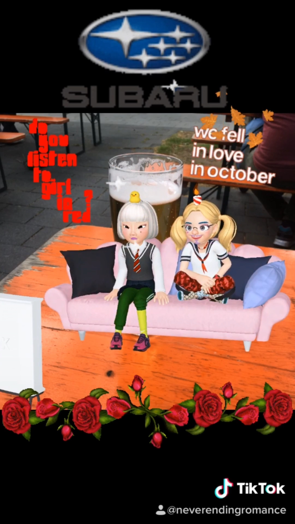 This web series is about a throuple romance between the three characters, Cockatoo, Raven and Pegasus. Short episodes show the development of their relationship and the ups and downs of being together. The first episode was created at the beginning of the pandemic. The series was created with videos and images from Zepeto avatars and edited together in TikTok using editing presets and various filters. Through stickers, songs, and an voice over, the series draws on the trends, codes, and styles of queer online communities.